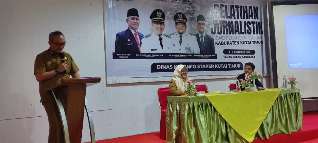 LININEWS, SANGATTA Pemerintah Kabupaten Kutai Timur (Kutim) menggelar Pelatihan Jurnalistik dua hari untuk meningkatkan kapasitas Perangkat Daerah (PD) dalam menyampaikan informasi publik secara profesional. Pelatihan yang berlangsung sejak Selasa (3/12/2024) di Teras Belad, Sangatta Selatan, ini dibuka oleh Kepala Dinas Komunikasi dan Informatika (Diskominfo) Staper, Ronny Bonar Hamonangan Siburian, yang mewakili Bupati Kutim, Ardiansyah Sulaiman.